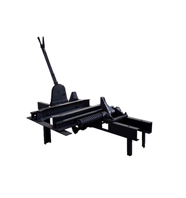 此阻車(chē)器為阻輪式阻車(chē)器,是礦井車(chē)場(chǎng)中將運(yùn)行的礦車(chē)停止在某一個(gè)固定點(diǎn)的限位裝置,主要由一對(duì)阻爪和彈簧緩沖裝置等組成。阻爪打開(kāi)時(shí),礦車(chē)可自由通過(guò);阻爪關(guān)閉時(shí)即阻擋住礦車(chē)車(chē)輪,是礦車(chē)停停止前進(jìn)。阻車(chē)器可分為單式和復(fù)式兩種。復(fù)式阻車(chē)器即兩個(gè)聯(lián)動(dòng)的單式阻車(chē)器,相互動(dòng)作閉鎖,除停止礦車(chē)外,還起分解礦車(chē)的作用。